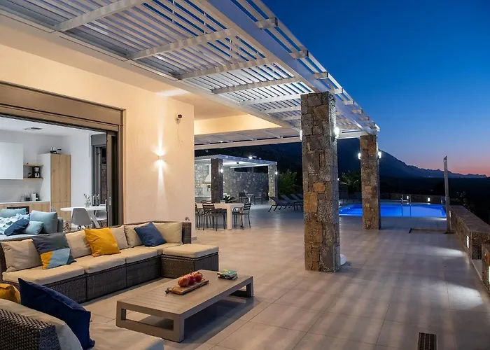 Situé à environ 6 km de l'église Afendis Christos, Villa Doxa Ierápetra propose des spectacles en direct pour vos loisirs. Située à environ 15 minutes en voiture du Fort vénitien d'Iérapétra, cette villa de 6 pièces dispose d'une terrasse avec vue sur la mer.